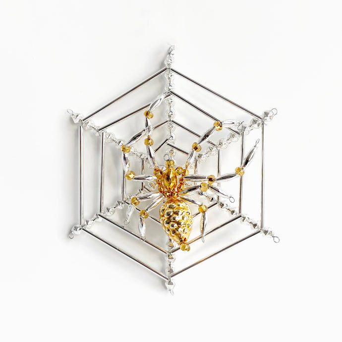 Böhmisches Glasperlen-Ornament 'Spinne im Netz'