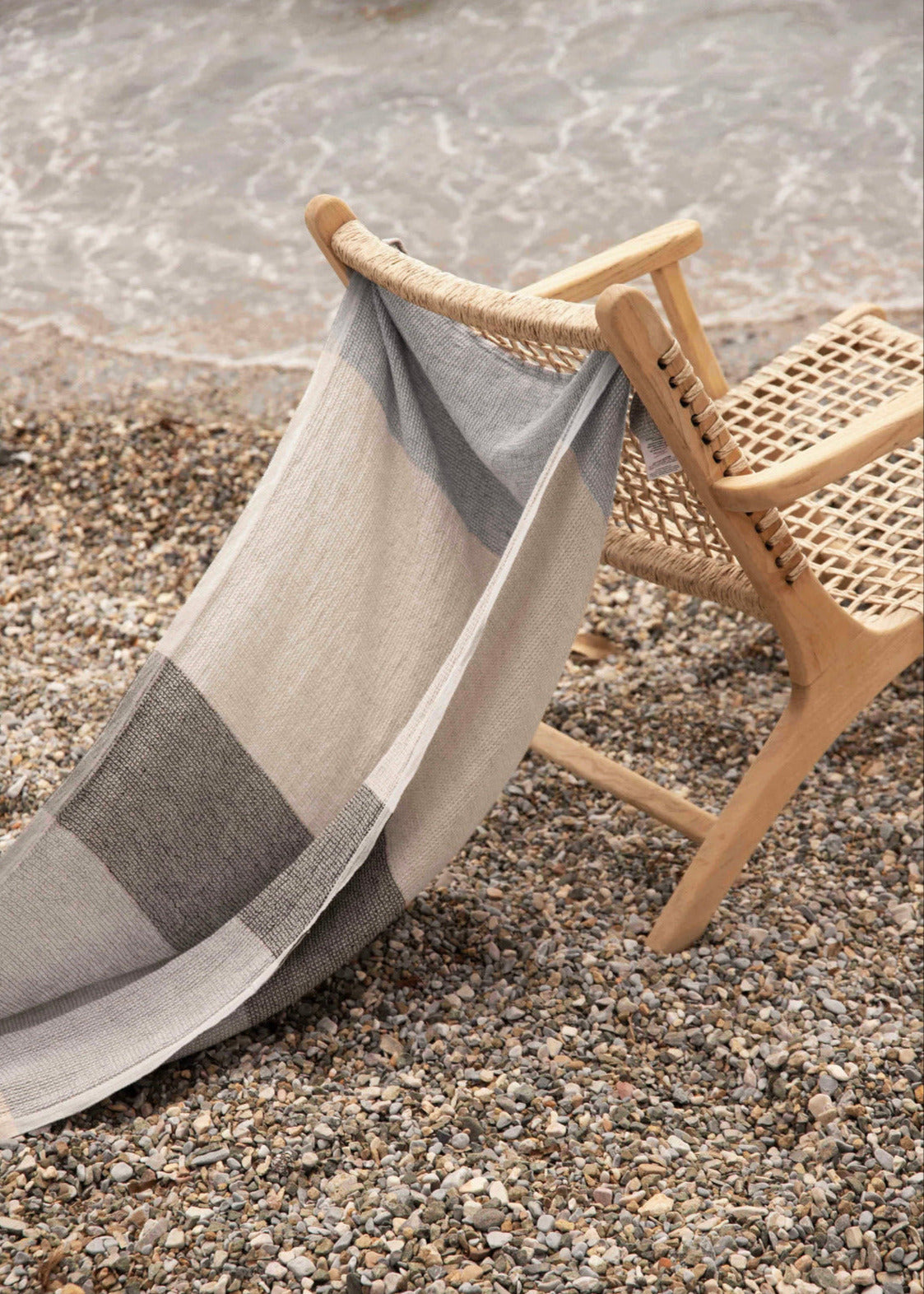 'Terva' sauna and bath towel Design: Lapuan Kankurit Dimensions: 85 x 180 cm Material: 143% Tencel, 39% linen, 18% Cotton Made in Finland.