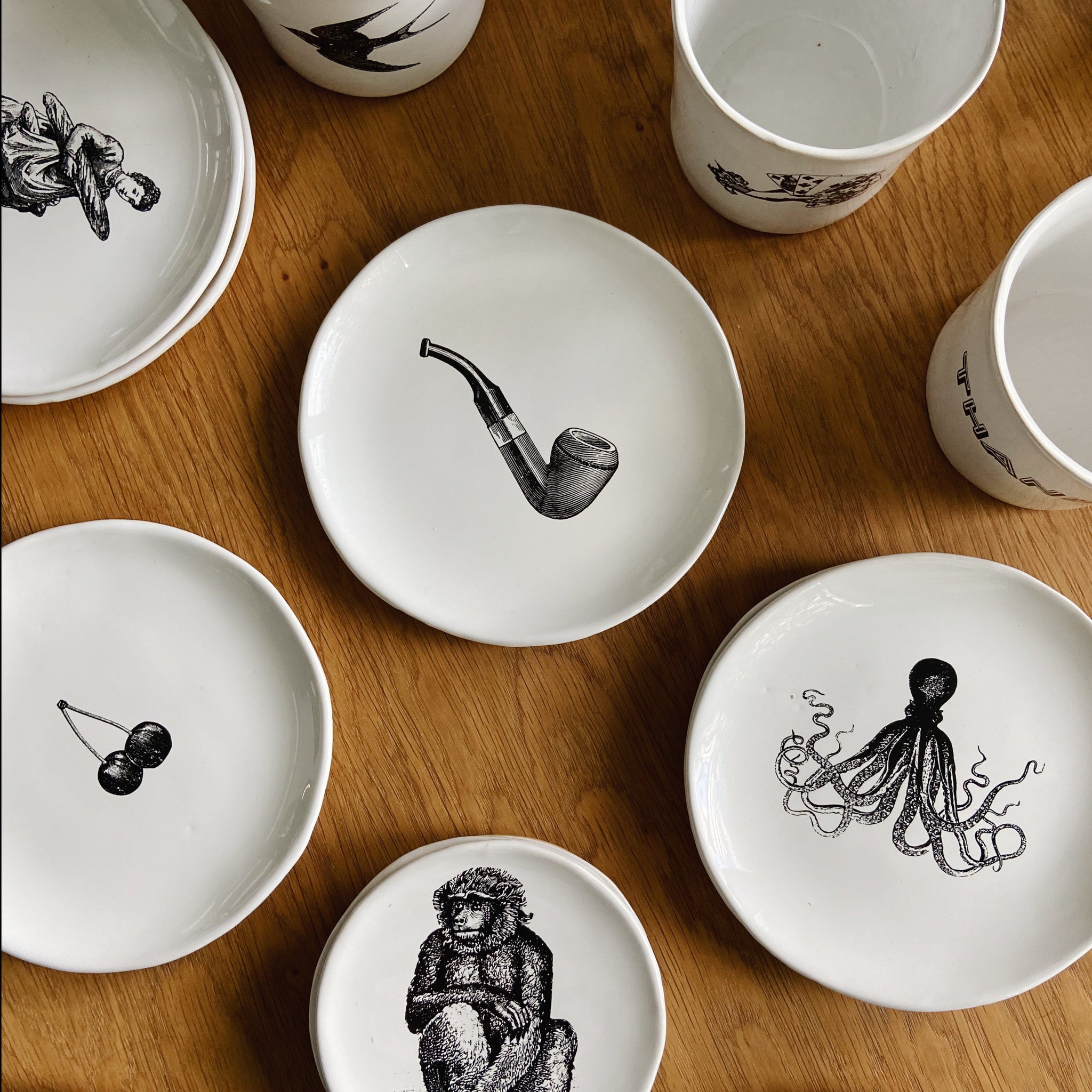 Kleiner Teller 'Kraken' Design: Kühn Keramik Maße: Ø 14.5 cm Der Teller ist spülmaschinenfest und mikrowellengeeignet. Jedes Stück ist aufgrund der Handarbeit ein Unikat. Kann von der Abbildung abweichen.