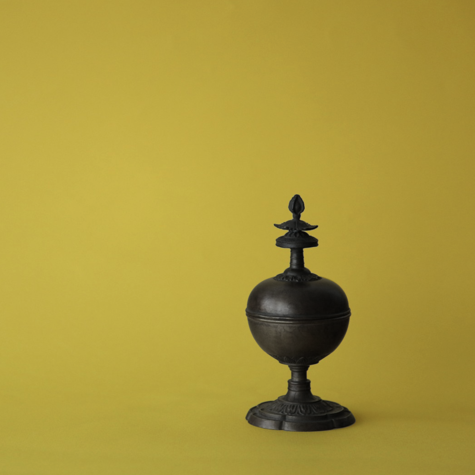 'Pagoda' Räucherbehälter von Nousaku Design: Yuka Arii Material: Messing, antikschwarz gefärbt Maße: 7.6 cm x 15.2 cm Wird in 'Kiri' Geschenkbox aus Holz geliefert. Hergestellt in Japan.