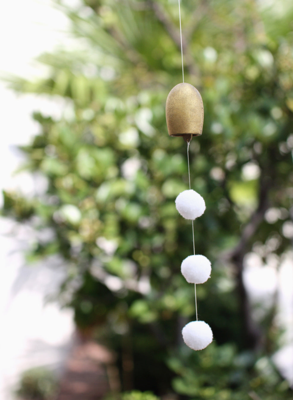 'Tsubomi' Windspiel Design: Oji Masanori Material: Messing Maße: DIe Glocke ist etwa 4,4 x 3,2cm groß. Die Aufhängeschnur ist 32cm lang. Im Geschenkkarton verpackt. Die Pompoms sind aus Washi-Papier hergestellt. Es ist wasserbeständig, aber nicht wasserdicht, sollte also falls draußen unter einem Dach aufgehängt werden. Hergestellt in Japan.